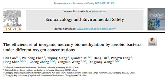 为此,bevictor1946韦德官网重金属生物地球化学循环研究团队以三峡库区消落带土壤中分离筛选获得的好氧及兼性厌氧汞甲基化能力菌株(荧光假单胞菌TGR-B2和恶臭假单胞菌TGR-B4)为研究对象,设置7%、14%和21%三种氧气浓度,探究菌株的生长速率与甲基化效能,以期更加清晰全面的了解非严格厌氧微生物的汞甲基化过程。相关研究成果近期以“The efficiencies of inorganic mercury bio-methylation by aerobic bacteria under different oxygen concentrations”为题发表在国际环境类一区期刊《Ecotoxicology and Environmental Safety》(IF=6.291)。